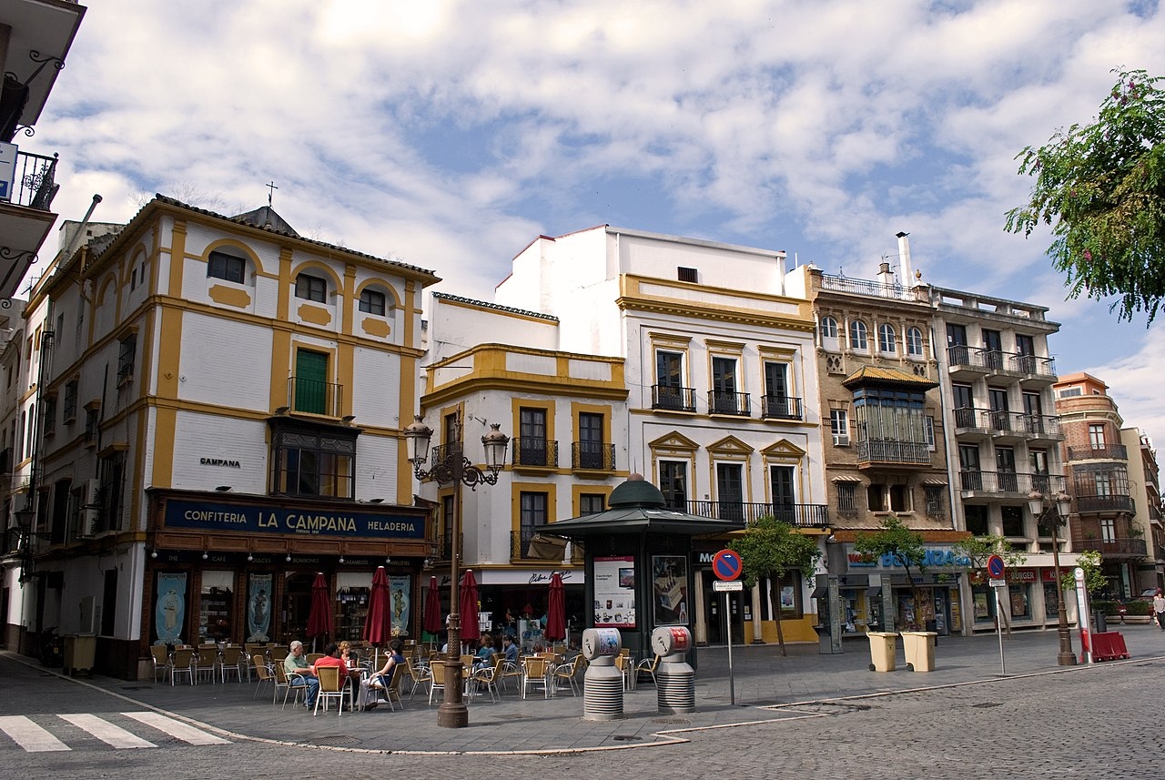 Situado en la céntrica calle Puente y Pellón de Sevilla en una urbanización con grandes patios, fuentes, vegetación...