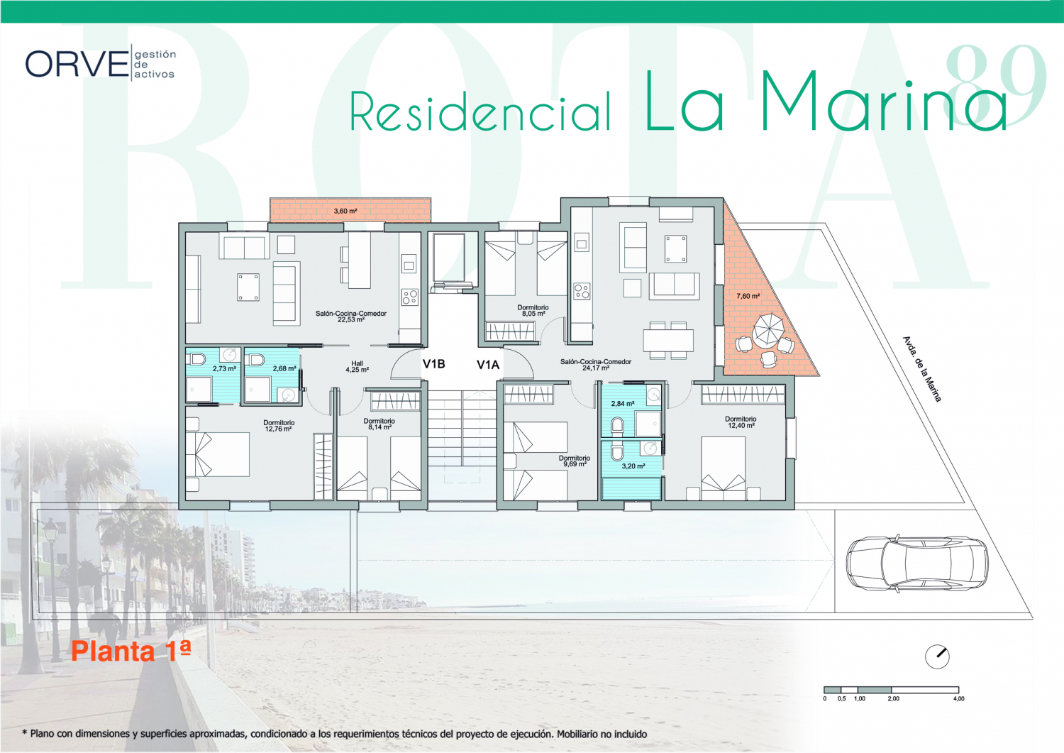 Con sus playas de fina y dorada arena bañadas por las aguas del Océano Atlántico se alza una Exclusiva promoción de obra nueva en "Residencial LA MARINA 89 " situada en la mejor zona de Rota “Avenida de La Marina” a 5 minutos del centro de la ciudad y de playas ubicadas cerca del casco urbano, como Virgen del Carmen, La Costilla, etc.… para aquellos que quieran disfrutar con todos los servicios al alcance de su mano.
