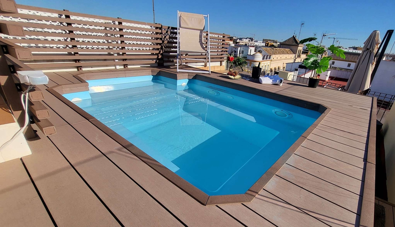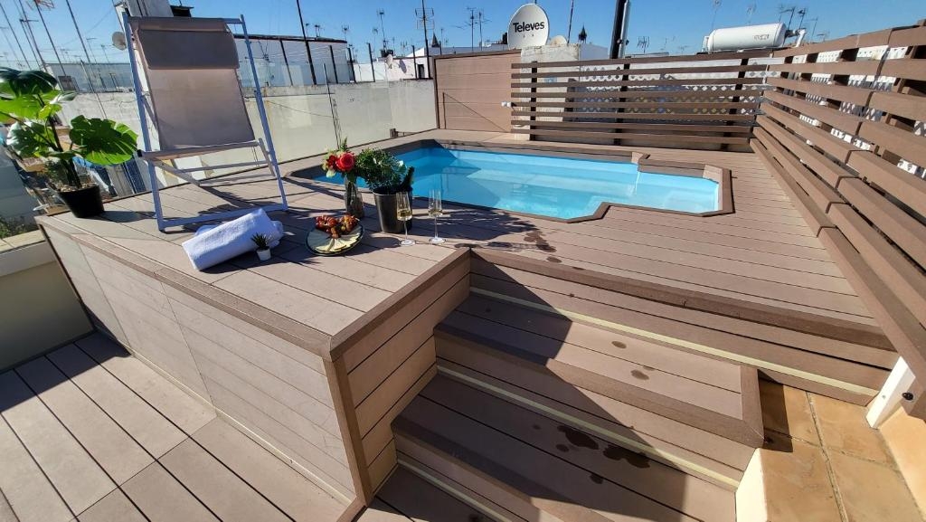 Distribuido en 3 plantas más un espectacular solarium, este edificio alberga 5 apartamentos completamente equipados, diseñados para maximizar el confort de los huéspedes. Cada rincón ha sido pensado para ofrecer una experiencia inolvidable, con un solarium que ofrece vistas inigualables y una refrescante piscina para disfrutar del cálido clima sevillano.